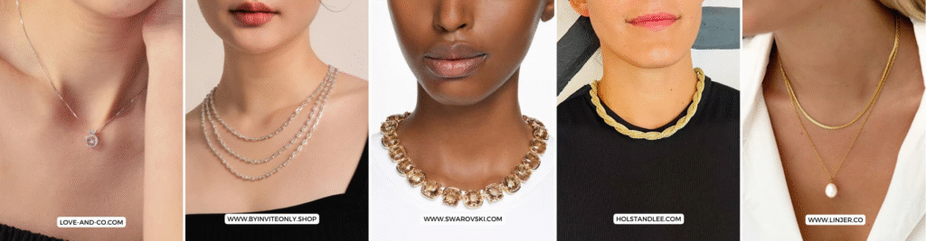 - Necklaces, earrings, and bracelets are small but impactful.